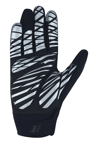 Glanzleistung: Was beim Winterradhandschuh ROTTERDAM zuerst ins Auge sticht, ist seine vollflächig reflektierende Oberhand aus hochwertigem ROECK-REFLECT Material. Es wirft nicht nur das Licht zurück*, sondern ist auch noch absolut winddicht und auf seiner Rückseite mit angenehm wärmendem und hautschmeichelndem Fleece versehen. Außerdem wartet dieser Handschuh mit noch ein paar weiteren cleveren Funktionen auf, die den Tragekomfort beim Biken spürbar erhöhen: die patentierte, ROECKL-exklusive COMFORT-INNOVATION, eine nahtfreie Polsterung der beim Radfahren besonders beanspruchten Daumenbeuge und ein ergonomisches FLEX-FOAM Polster. Farblich auf die Oberhand abgestimmt, zeigt sich die Innenhand aus taktilem, strapazierfähigem und zudem wasserabweisend ausgerüstetem DURASENSE Synthetiksuede mit großflächigem ALL-WEATHER-GRIP in stylishem Silber; für einen zuverlässigen Griff am Lenker, egal ob bei Trockenheit oder Nässe. Damit der Zeigefinger an Bremse und Schaltung zuverlässigen Halt findet, wurde die TOUCHSCREEN COMPATIBLE Funktion zum Tippen auf dem Smartphone übrigens an Daumen und Ringfinger integriert. Ein Neoprenbund mit Klettverschluss und ein weicher Fleece-Daumen runden die Ausstattung ab. Maschinenwaschbar bei 30 Grad.